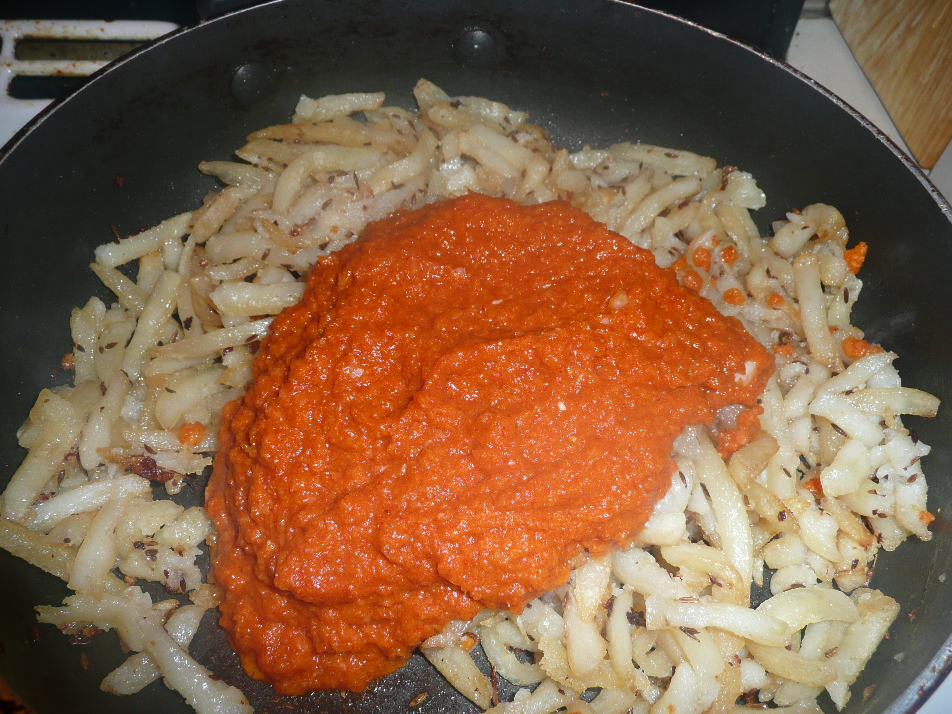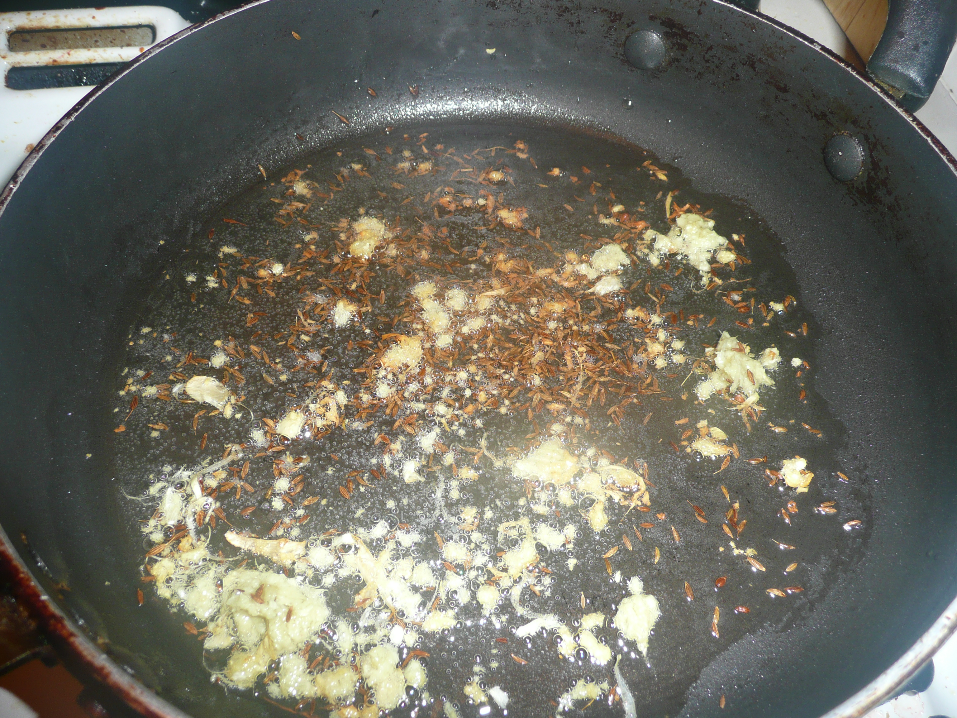 - Heat oil in a pan and add cumin and ginger garlic paste fry to golden red.