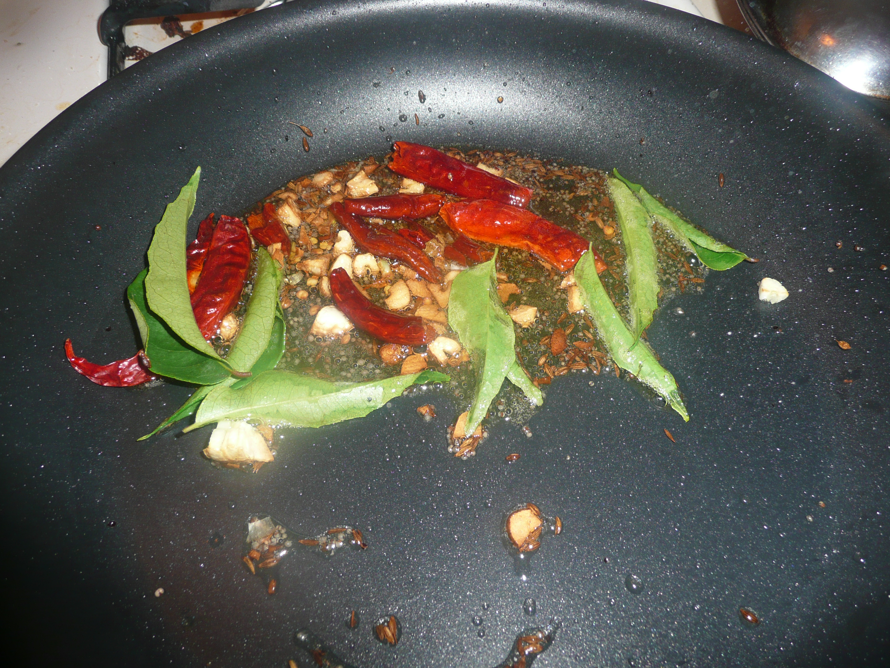 PUT TADKA AND ADD CURRY LEAVES AND CHOPPED GARLIC TO IT.