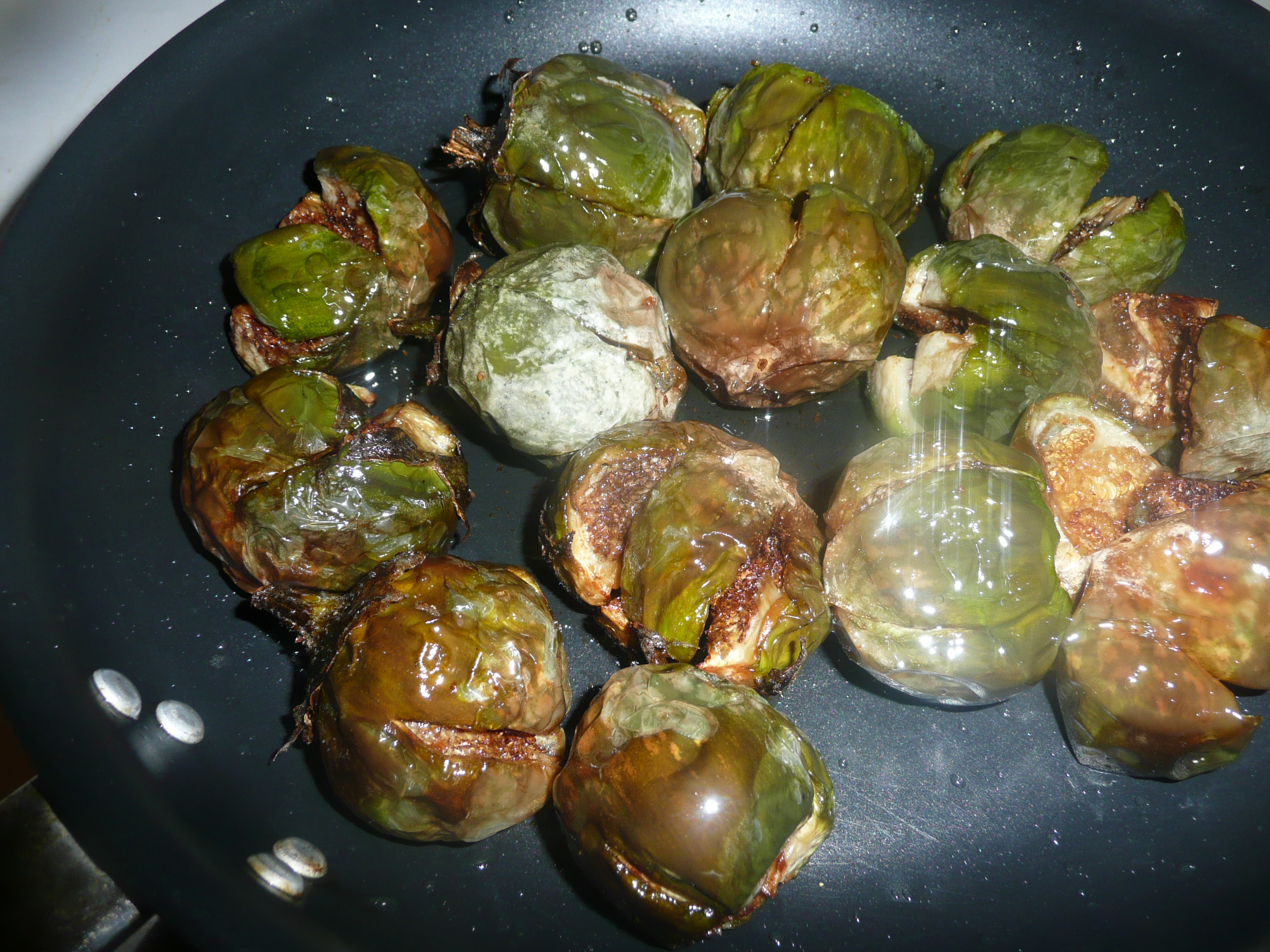 - Transfer the Brinjals well mixed with besan and stuff into a serving bowl.