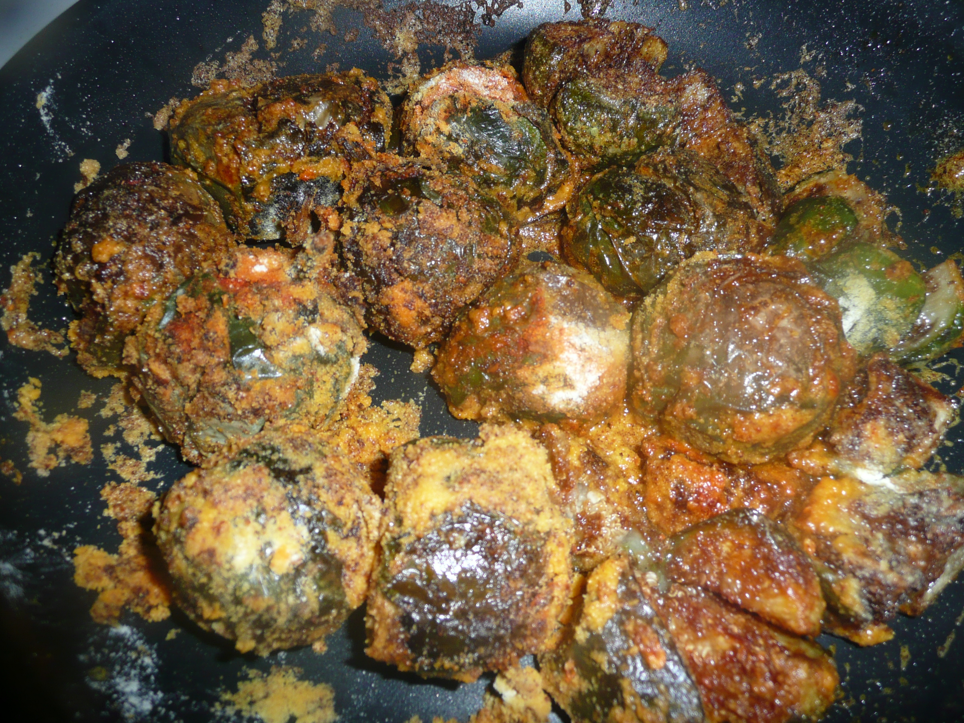 - Remove them from oil and put them in a pan jus add besan , salt and chilli powder .