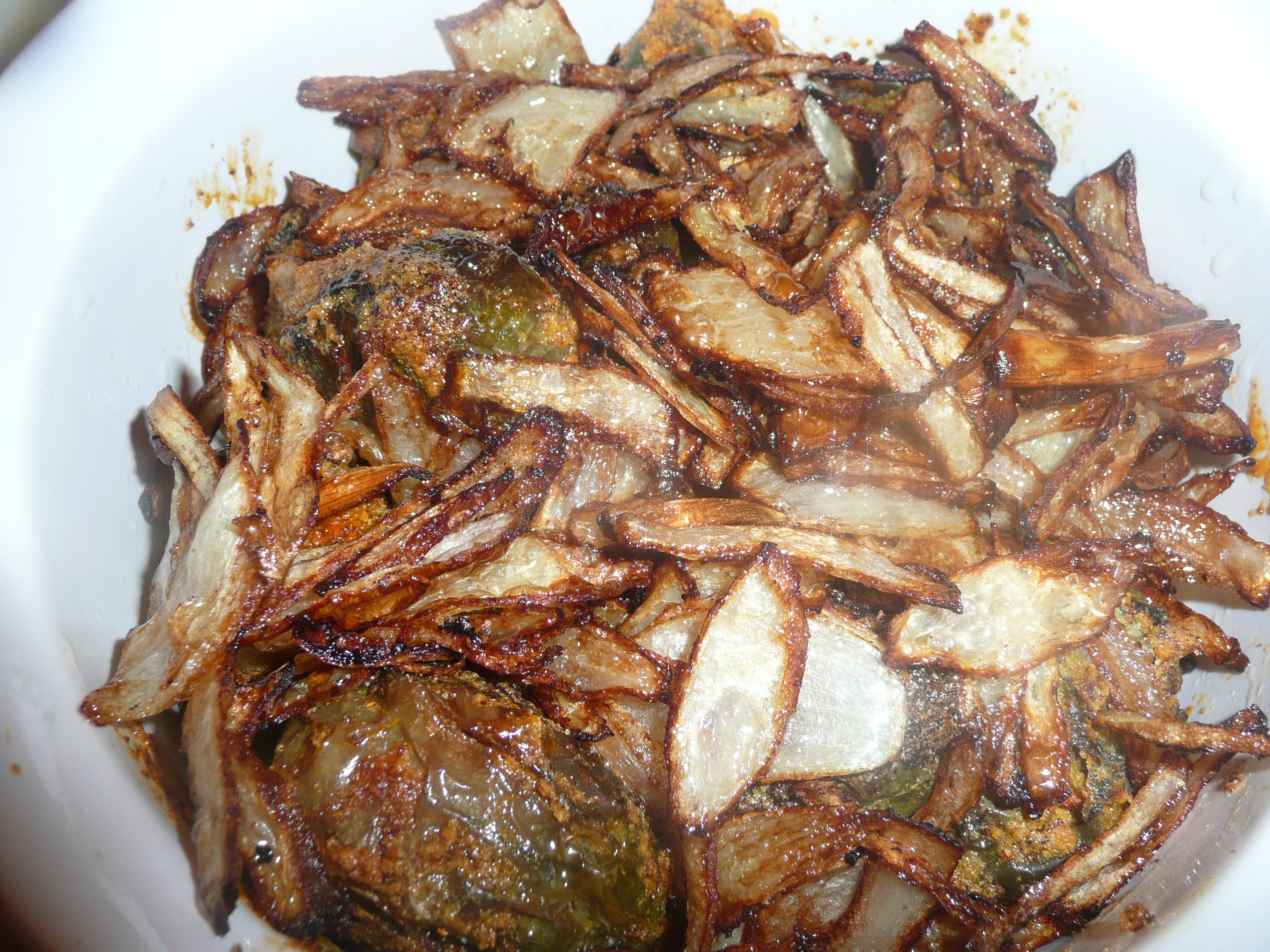 - Chop onions and deep fry them to golden red.