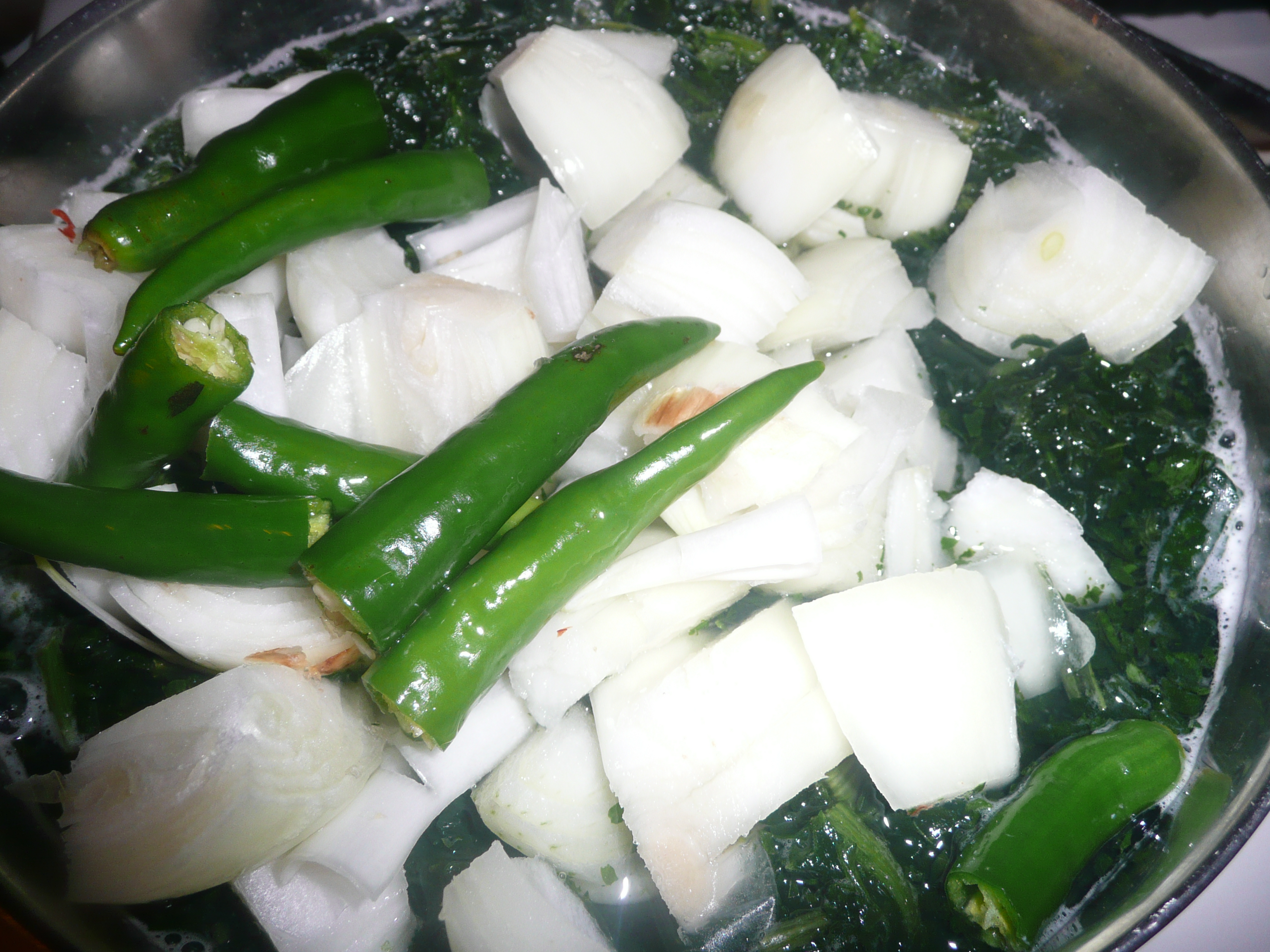 - WASH TUAR DAL AND ADD PALAKURA TO IT ALONG WITH CUT ONIONS AND GREEN CHILLIES.