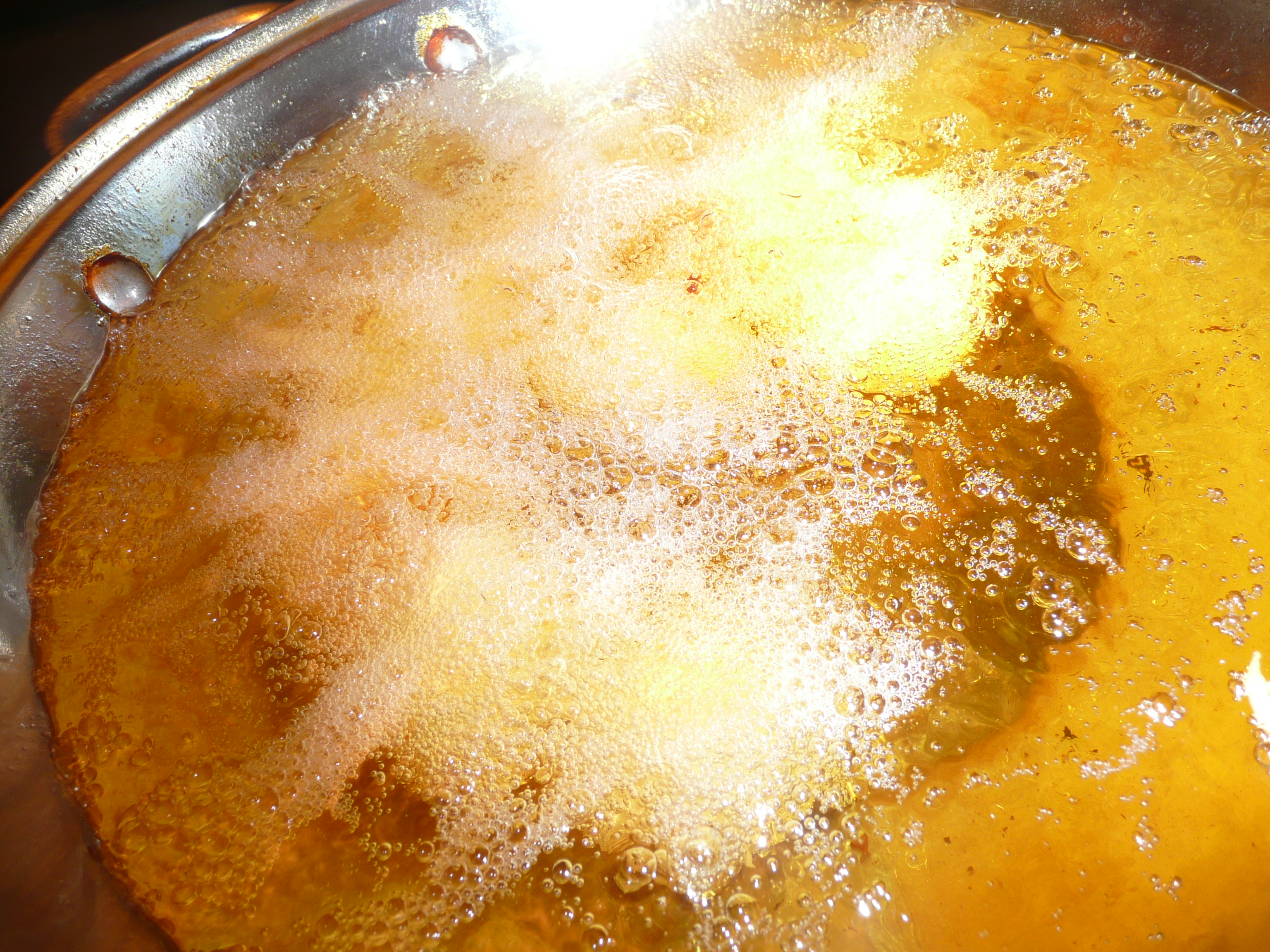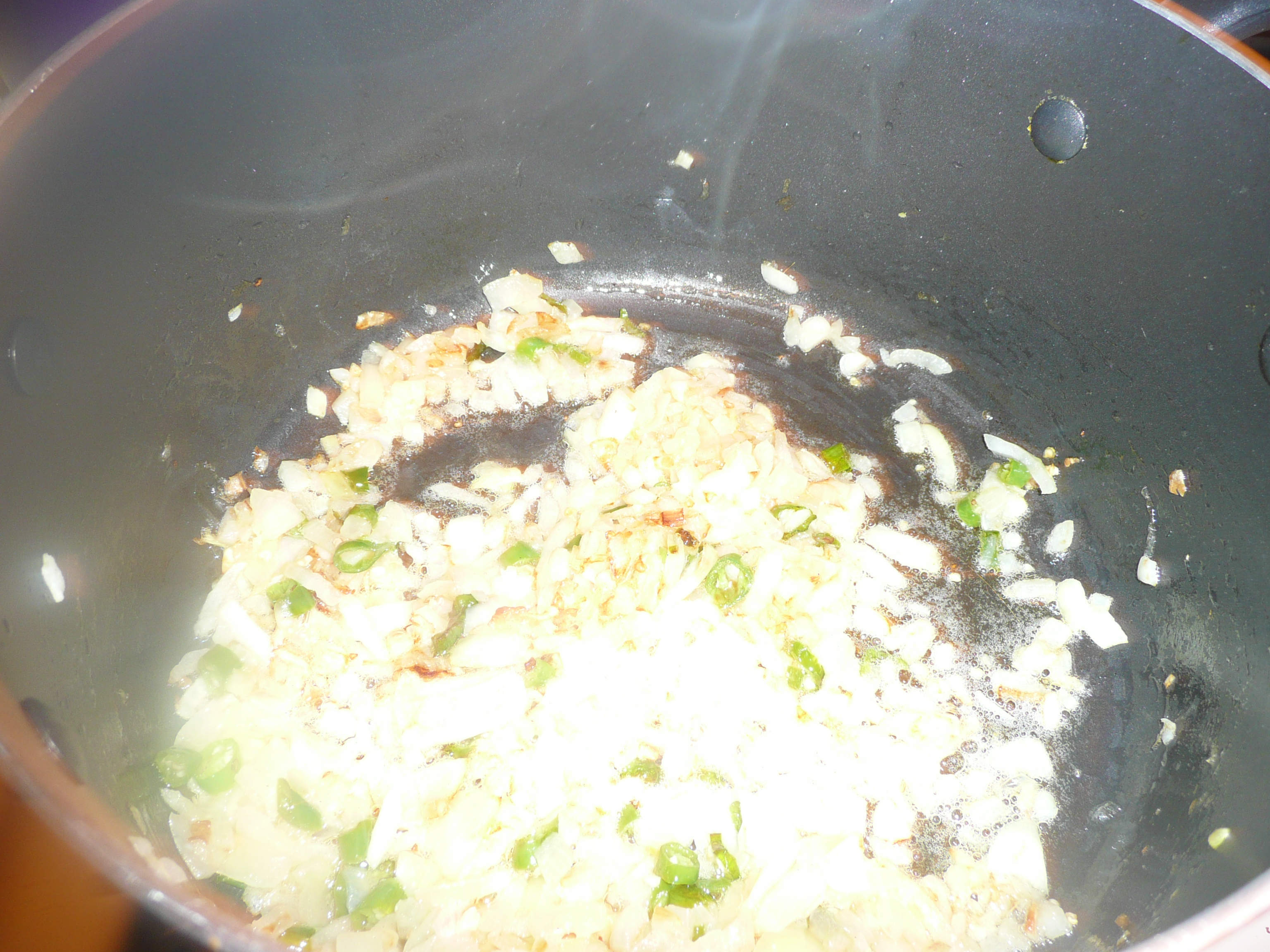- In 2 tbsp of oil , deep fry onions and greeen chillies.
