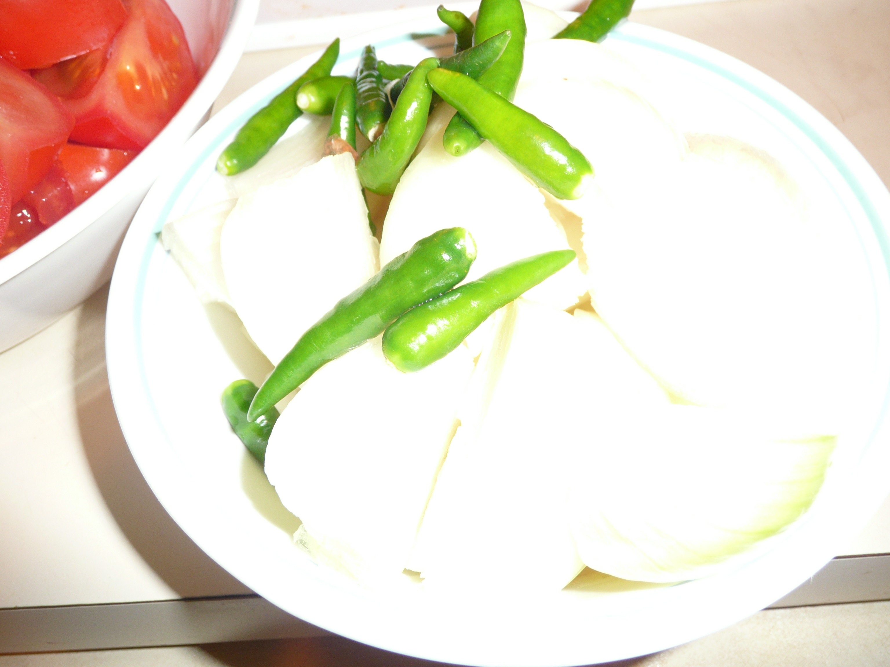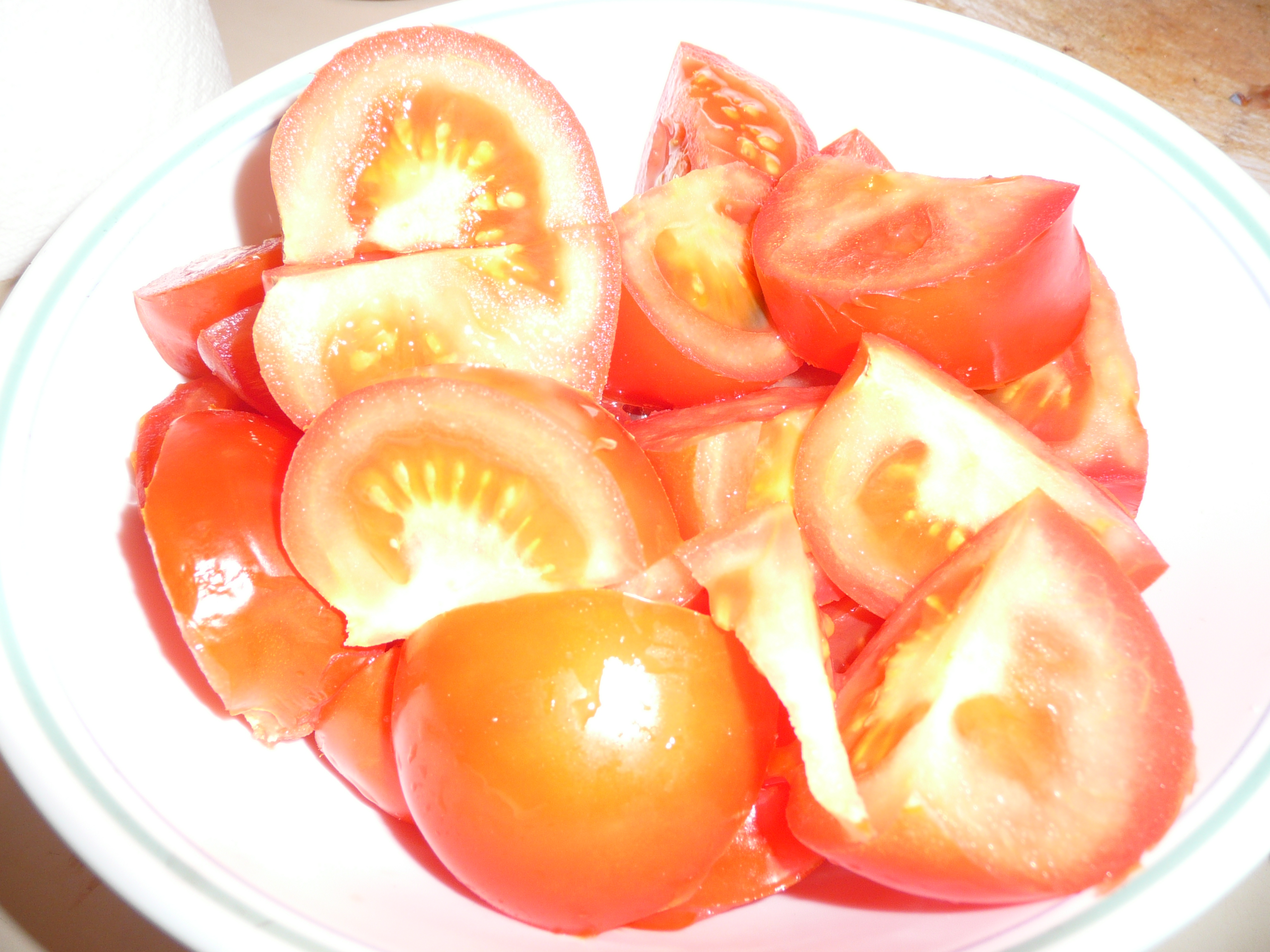 - Wash and cut tomatoes into four pieces each.Chop onions also in the same way .