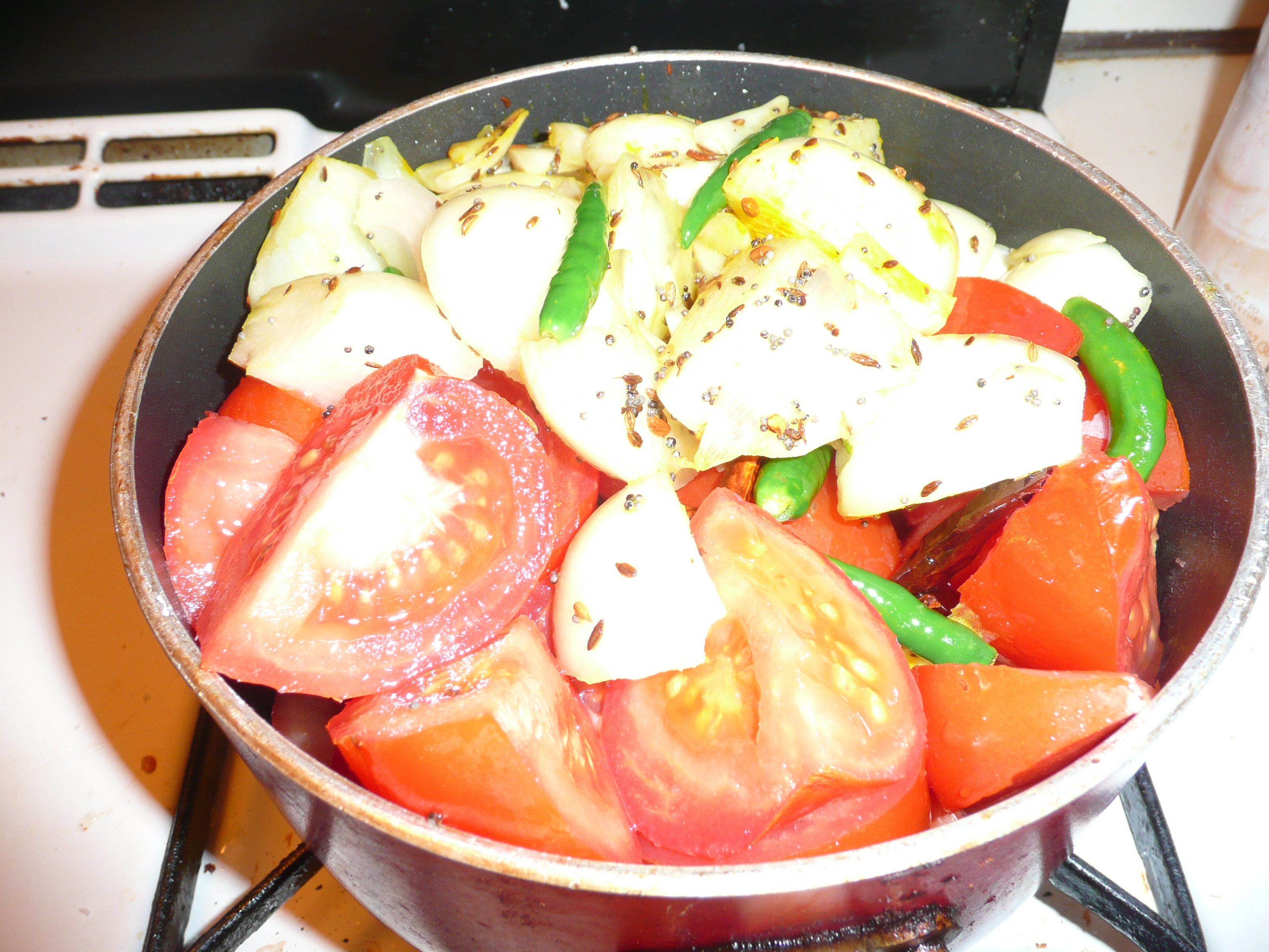 - Pour it over the tomatoes and onions and cook for about 15min.
