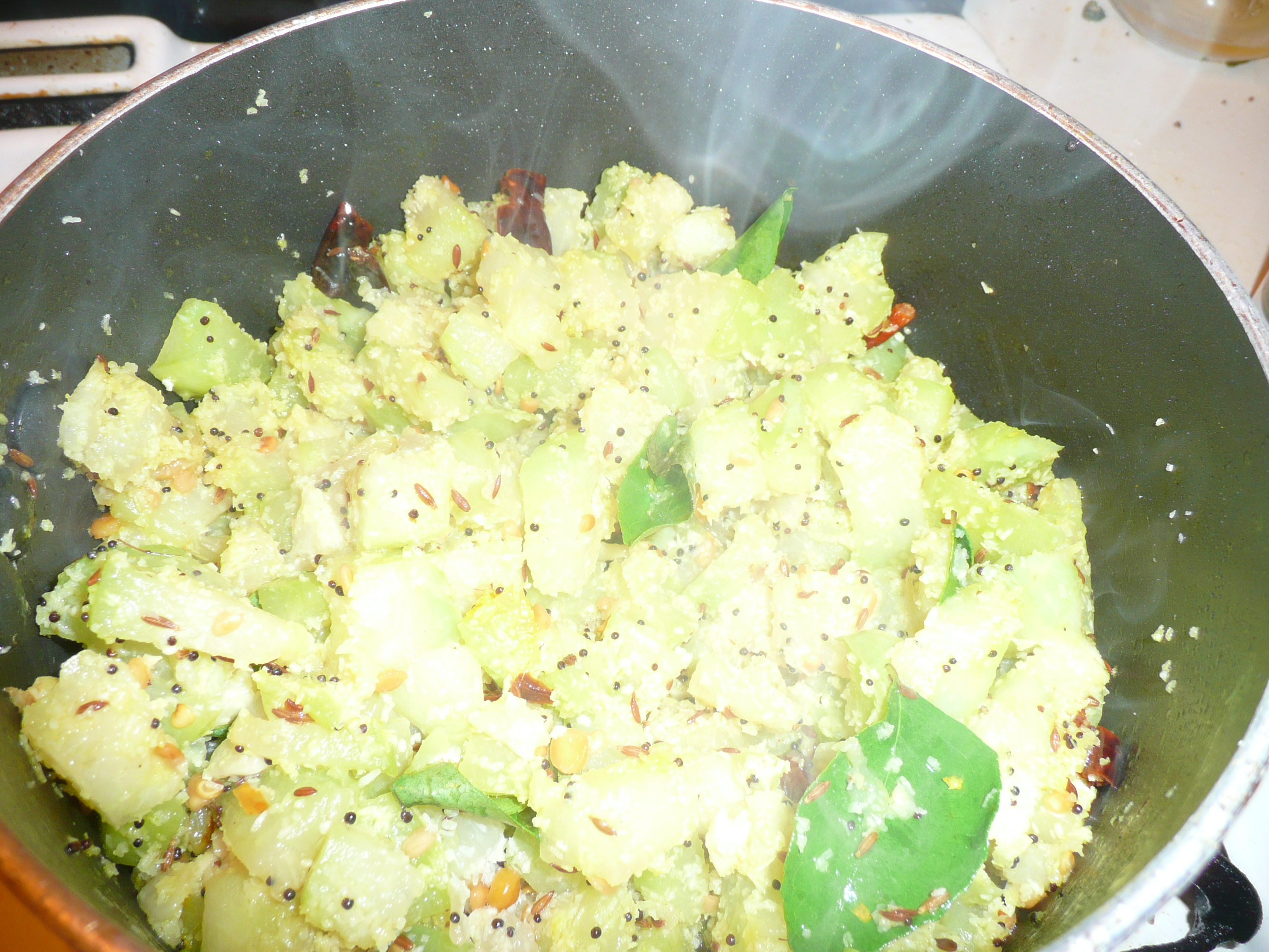- Put tadka and add the chaute ki pieces to it and mix well.
