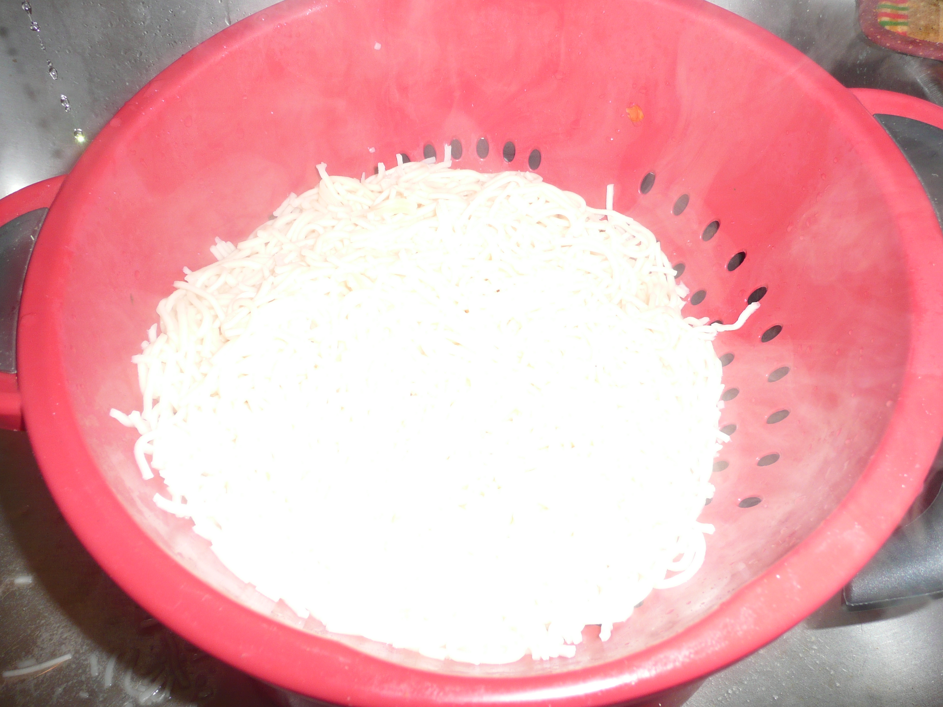 - Transfer into a strainer and drain away water.