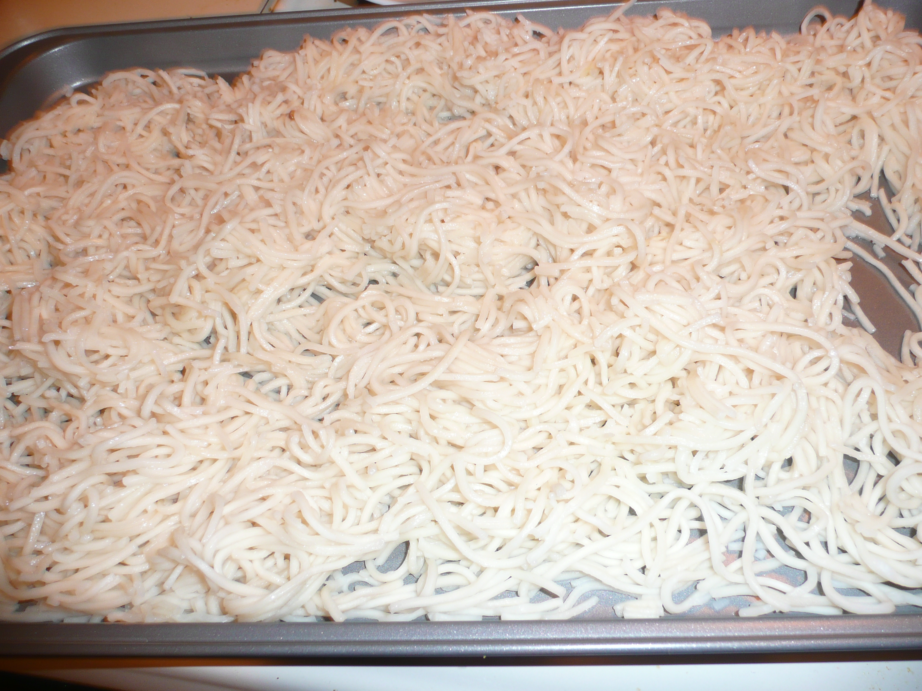 - Tranfer the noodles onto a flat tray and toss a tbsp of oil all over in order that they donot stick together.