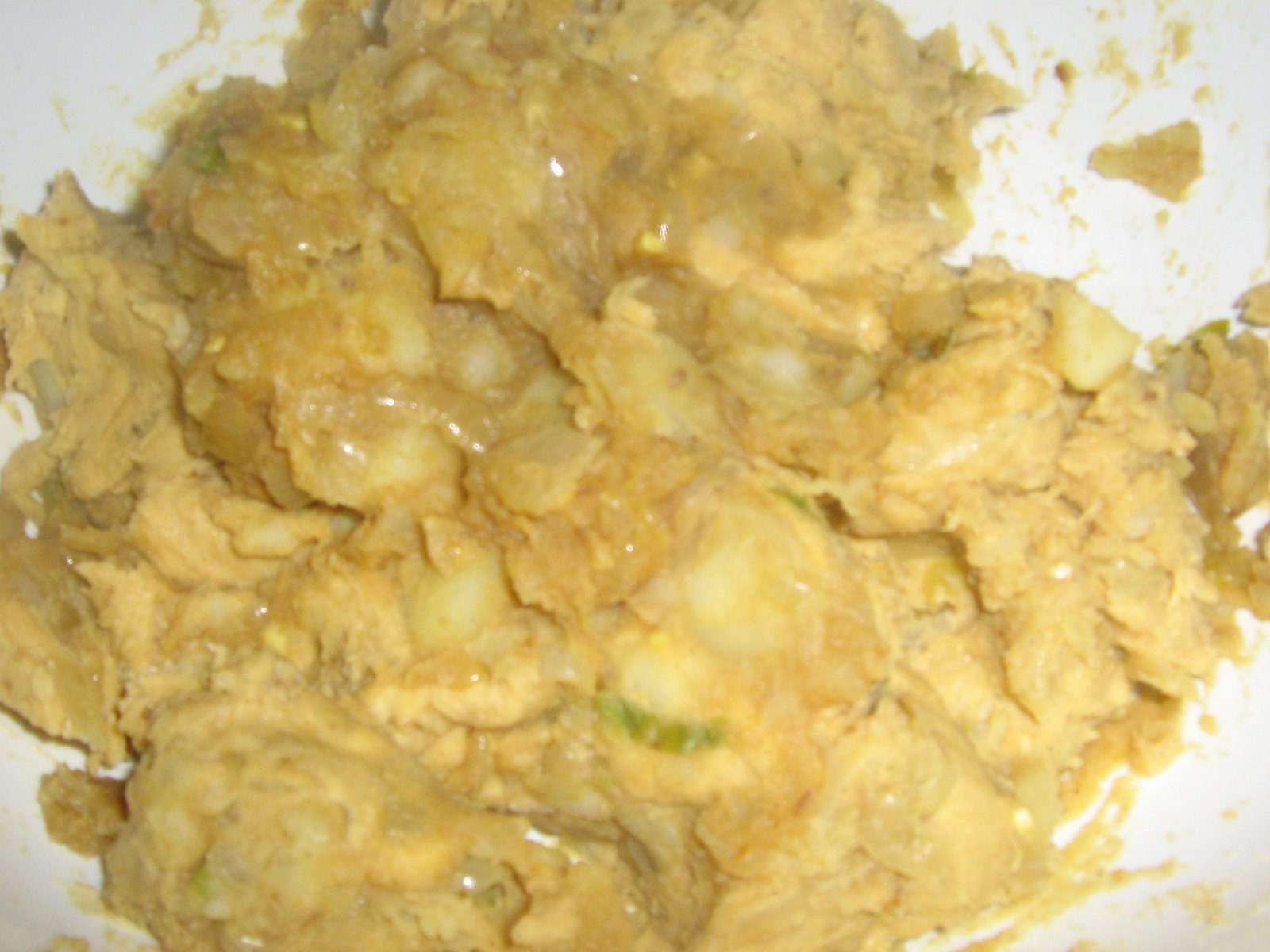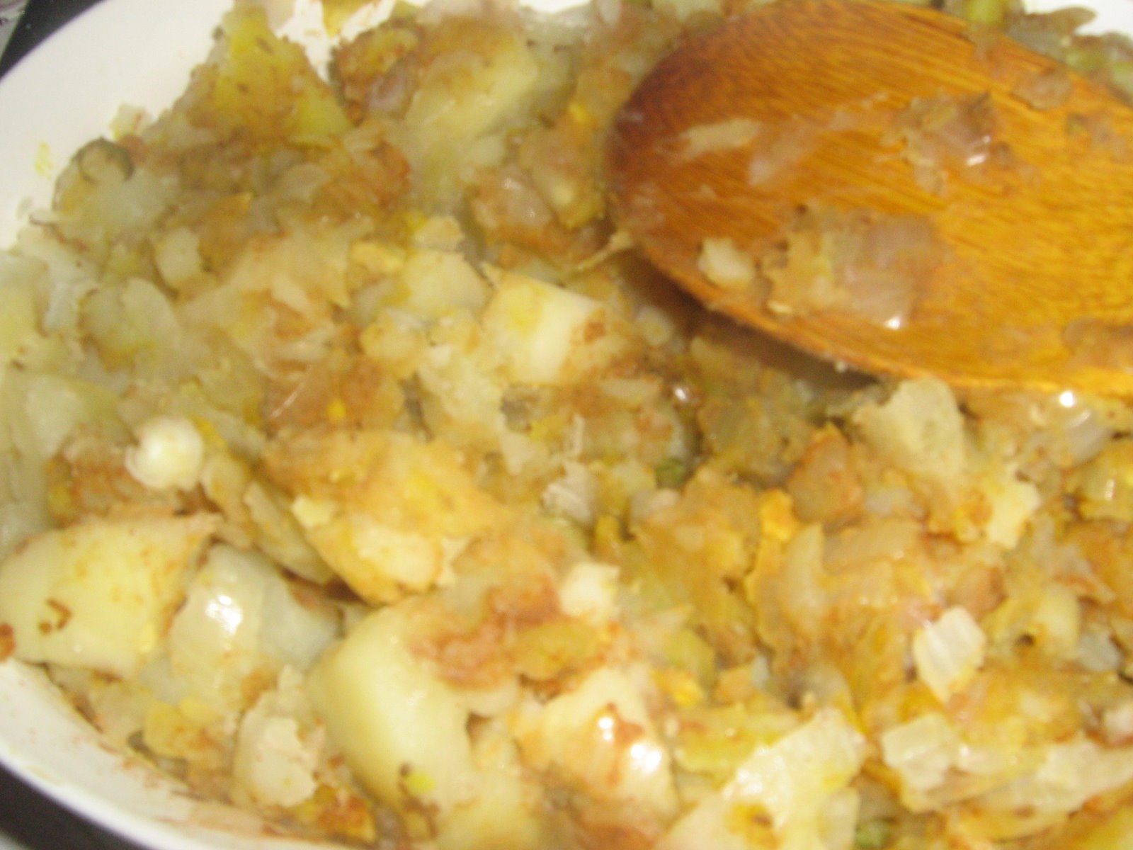 Once cooked smash them well and add garam masala , turmeric, salt and powdered cumin and chopped ginger .