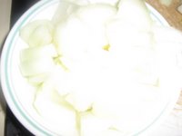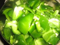 Cut capsicum into medium sized pieces and onions also of the same size.