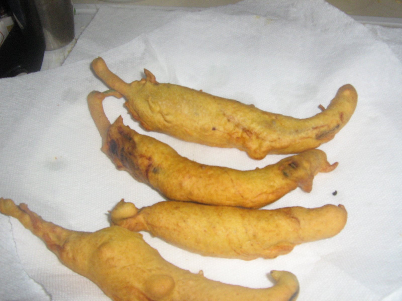 The flame should be on medium. Be away from the oil . Fry the mirchis to golden brown and repeat the process to be done with all the mirchis .